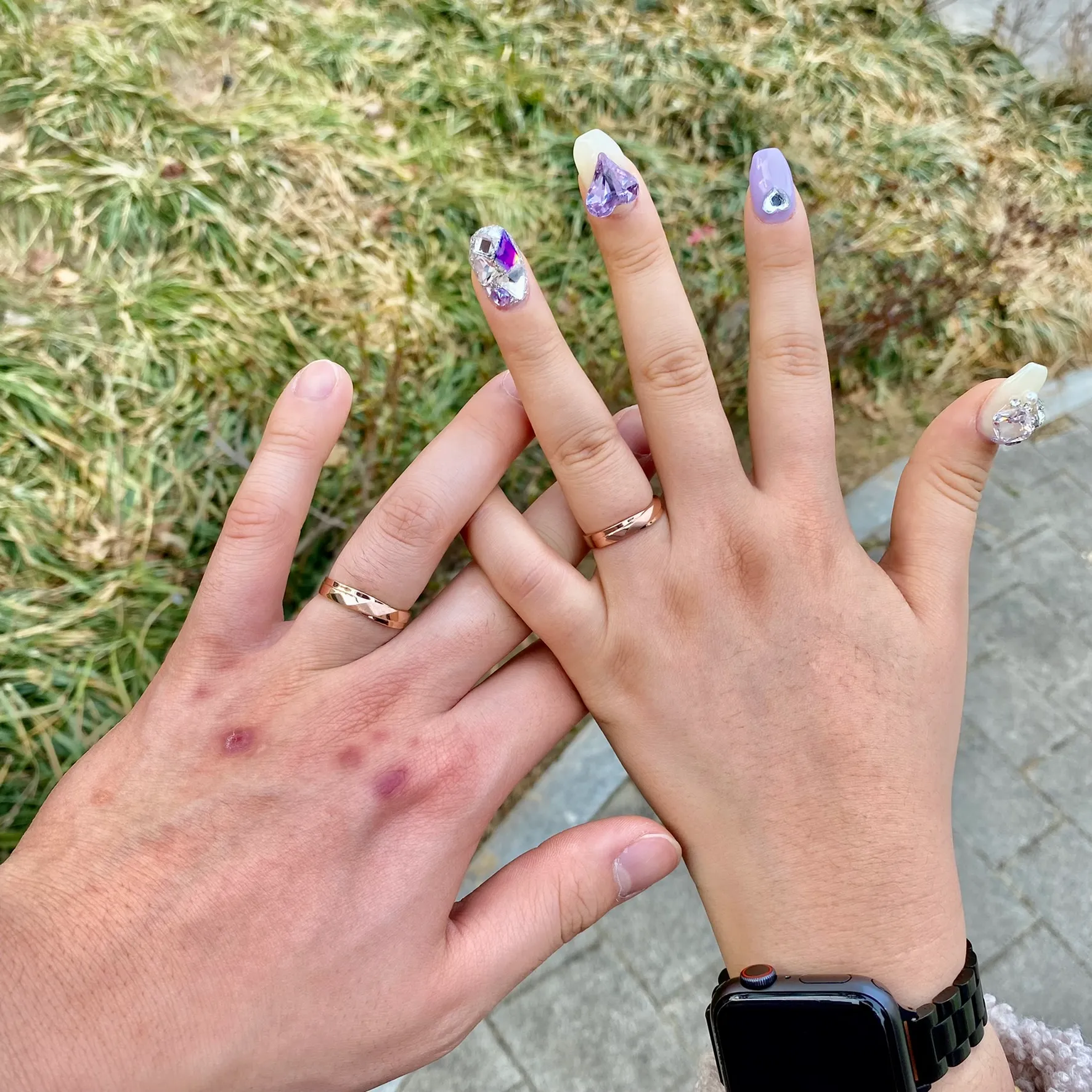 나는 여태 살면서 장난감을 제외하면 반지를 해본 적이 없다. 누나가 직접 만들어준 비즈 반지부터 시작해서, 이제는 600일을 기념하여 아름다운 커플링을 맞췄다. 내 취향 위주로 정한 것 같긴 하지만, 누나의 이쁜 손과 아름다운 네일아트에 잘 어울리는 것 같아 너무 행복하다. 심플하지만 부드러운 곡선에 반짝이는 반지를 보며 서로를 기억하고, 기념한다는 것이 너무 좋다.
